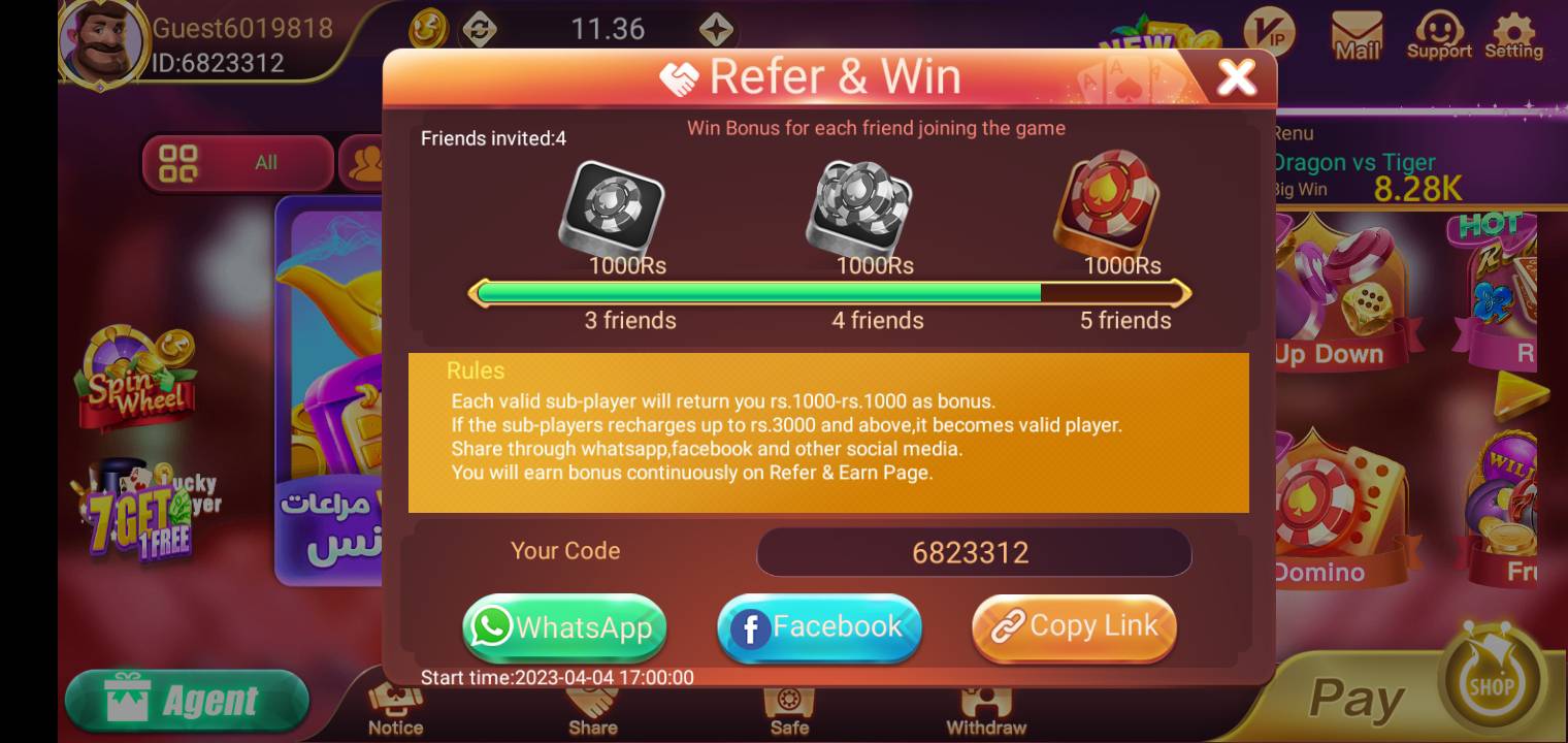 Players can participate in games like Dragon vs Tiger, Rummy, Roulette, and classic Teen Patti to win real money.